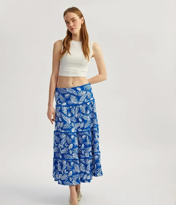 Kloş uzun etek, yüksek beli ve yan cep